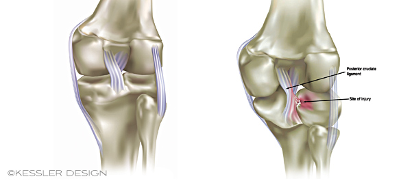 Vector illustrations of a normal knee and ligaments compared to a knee